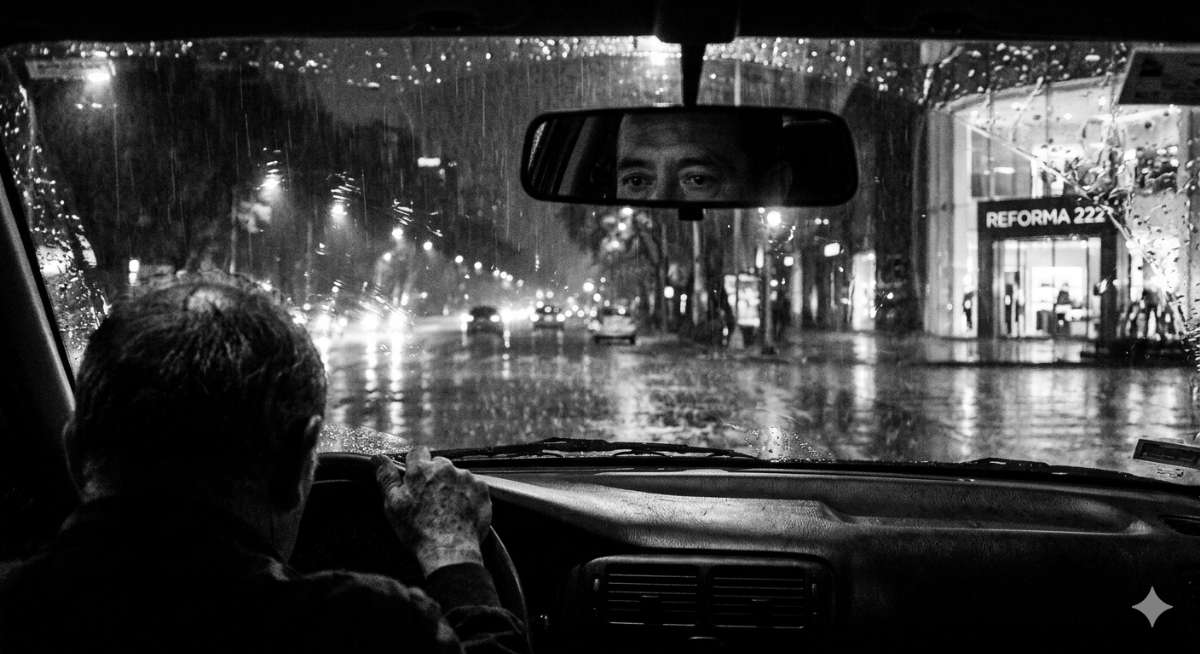 La lluvia en la Ciudad de México no cae, se desploma. Es una cortina de agua sucia que borra los edificios y convierte el asfalto en un espejo negro. Me refugié bajo el alero de un comercio, viendo pasar los autos. Dejé ir el primer taxi; una corazonada, un brillo extraño en la placa mal ajustada o quizás el gesto huraño del conductor me hicieron dar un paso atrás. En esta ciudad, la intuición es un mecanismo de supervivencia.