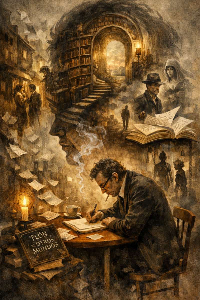 Antes de dormir, abría un volumen que había encontrado años atrás en la biblioteca municipal: Tratado sobre los reflejos posibles en Tlön y otros mundos, un texto incongruente, sin autor conocido, que describía universos donde la escritura no solo recreaba la realidad, sino que la absorbía; explora su naturaleza, su identidad y la multiplicación de las imágenes. Aunque estaba seguro de que había escrito mal el título, no le importaba; la idea seguía siendo la misma. Lo leía como si cada página contuviera instrucciones secretas para gobernar su reino. La existencia de ese libro le recordaba que incluso fuera de sí, en los rincones olvidados del mundo, podía hallarse un reflejo de su propia mente.