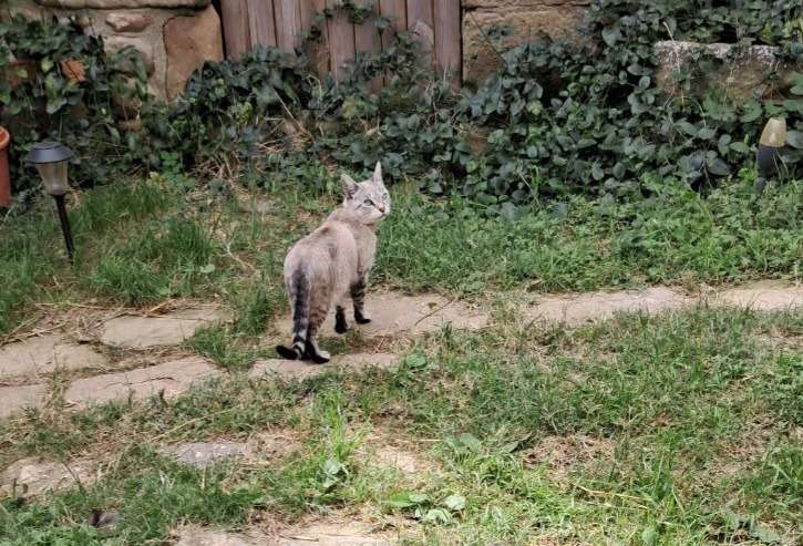 Una gata gris de ojos azules maúlla a mi lado y echa a andar mirando hacia atrás, como queriendo indicar que la siga, así lo hago y después de un par de kilómetros entre árboles y plantas, llegamos a una explanada en donde se levanta un viejo caserón abandonado. En el jardín, varias parejas están sentadas ante una mesa llena de todo lo necesario para celebrar un banquete, charlando animadamente, pero sin tocar los alimentos. han dejado dos sillas vacías, una al lado de la otra, en un extremo de la mesa. Me siento, dejando a mi derecha la última silla libre y a mi izquierda el infinito paisaje.