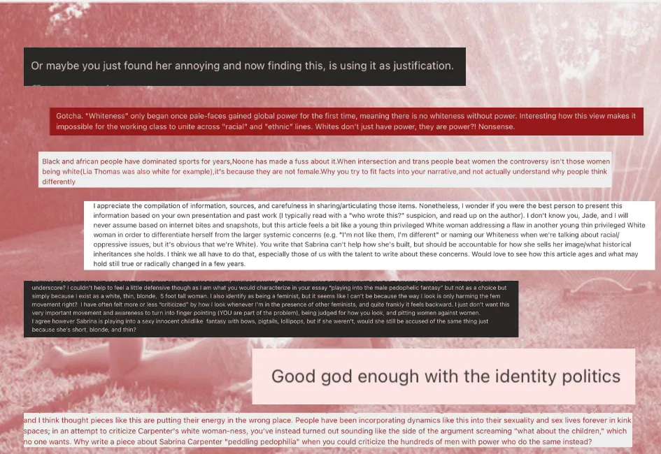 I also believe Sabrina’s stature adds a unique layer to all this. Like I mentioned earlier, Sabrina’s size is routinely mentioned—by her, her team, her interviewers, and her fans—in her core brand. In fact, Short n’ Sweet is meant to be a cheeky reference to her being only 5’. Her smallness only adds to her allure as the Western Feminine, and puts fire behind the pedophilic fantasy her team is selling. But there’s reason for this beyond adherence to American beauty standards—short, white girls gain favor with men because of their smallness.