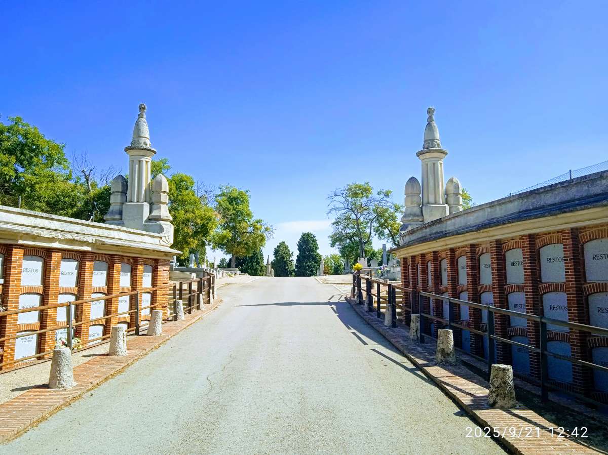 Llegaron otros días después, cuando tuve que presentarme en el campo santo ante la capilla crematoria de la Almudena. A la salida por la puerta más cercana, visualice la entrada del cementerio Civil.