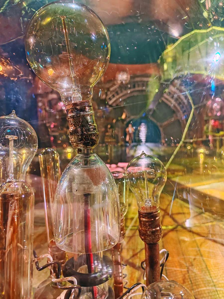 Un mini salón de té acoge, en sus paredes esféricas, a la pequeña Lilly. Sostiene una taza de porcelana en miniatura mientras saluda al público como si fuese la dueña de este reino mágico. Parece la bola de un gigantesco árbol de Navidad.