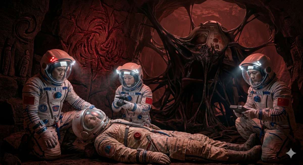 El comandante Wei Chen lo pensó mientras descendía por el conducto de lava, sus botas hundiéndose en la arena roja. Detrás de él, la ingeniera Liu Mei y el geólogo Zhang Wei. Tres astronautas de la CNSA. La primera misión tripulada china a Marte. El orgullo de una nación.
