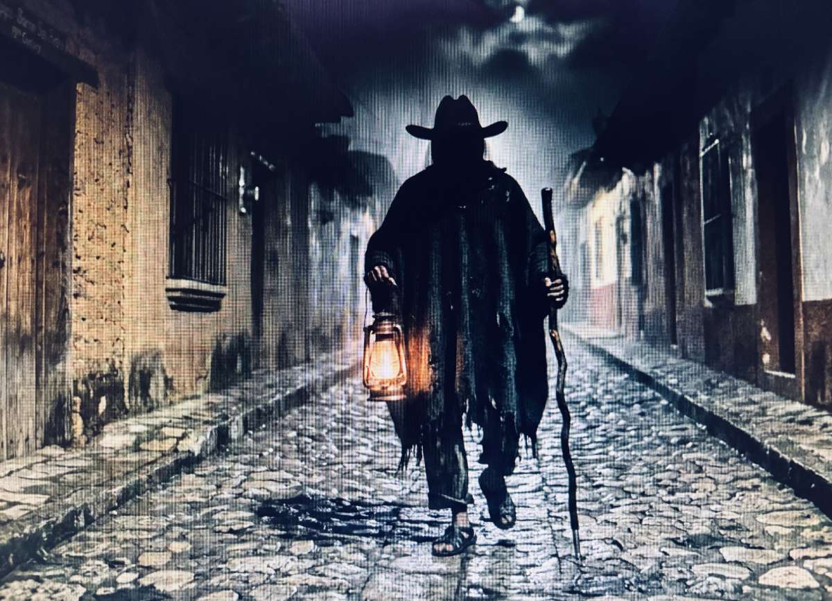 Al caer la noche, se hacía presente el Sereno. Recorría las calles con su farol y su bastón de madera negra. Una noche, el miedo se volvió curiosidad y mi madre-niña acercó el ojo a la rendija de la puerta. Vio pasar la luz, pero las gotas de lluvia no se estrellaban contra el hombre: lo atravesaban como si fuera humo. Escuchó el silbido largo y frío, un sonido que no nacía del metal del silbato, sino del aire mismo. Bajo el ala del sombrero solo habitaba un vacío de sombra, y el hombre, sin dejar huellas en el lodo, seguía su marcha como una prolongación de la misma niebla.